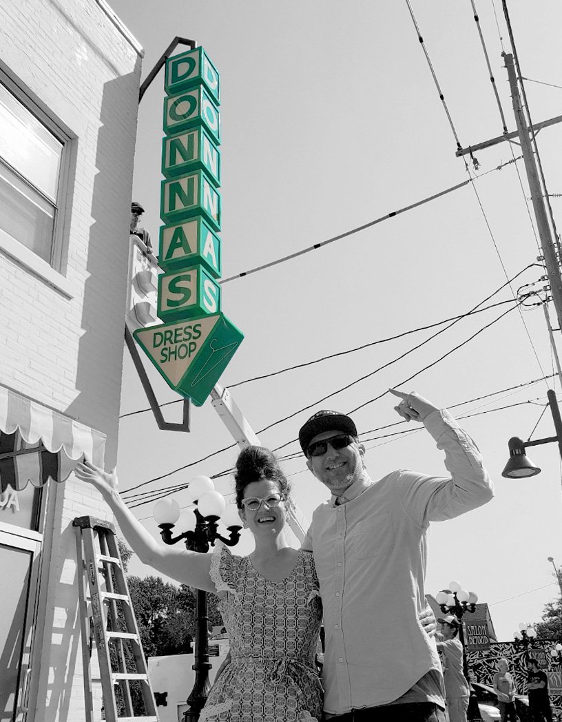 Midtown Signs has enjoyed collaborating with Donna since 2007. The first project was a painted store front to go along with Donna's vintage theme. The storefront incorporated Donna's now trade mark hanger logo.